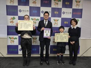 は第37回MOA美術館全国児童作品展 絵画の部で入選し、瀬野守口市長にその報告をされました。